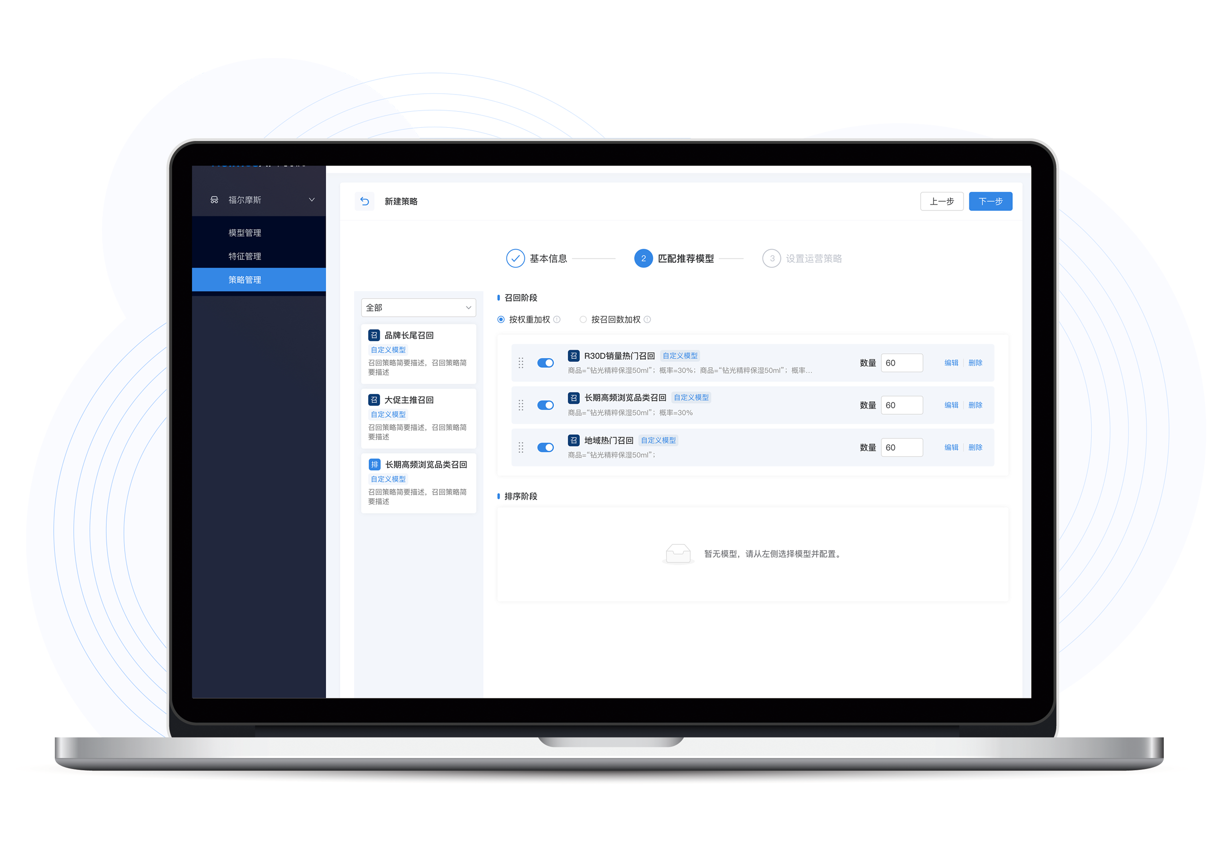 bifa必发88智能推荐灵活设置了置顶、必推、黑名单、属性过滤、频次设置等丰富的运营策略,为不同推荐场景、不同推荐点位需求提供业务自定义能力